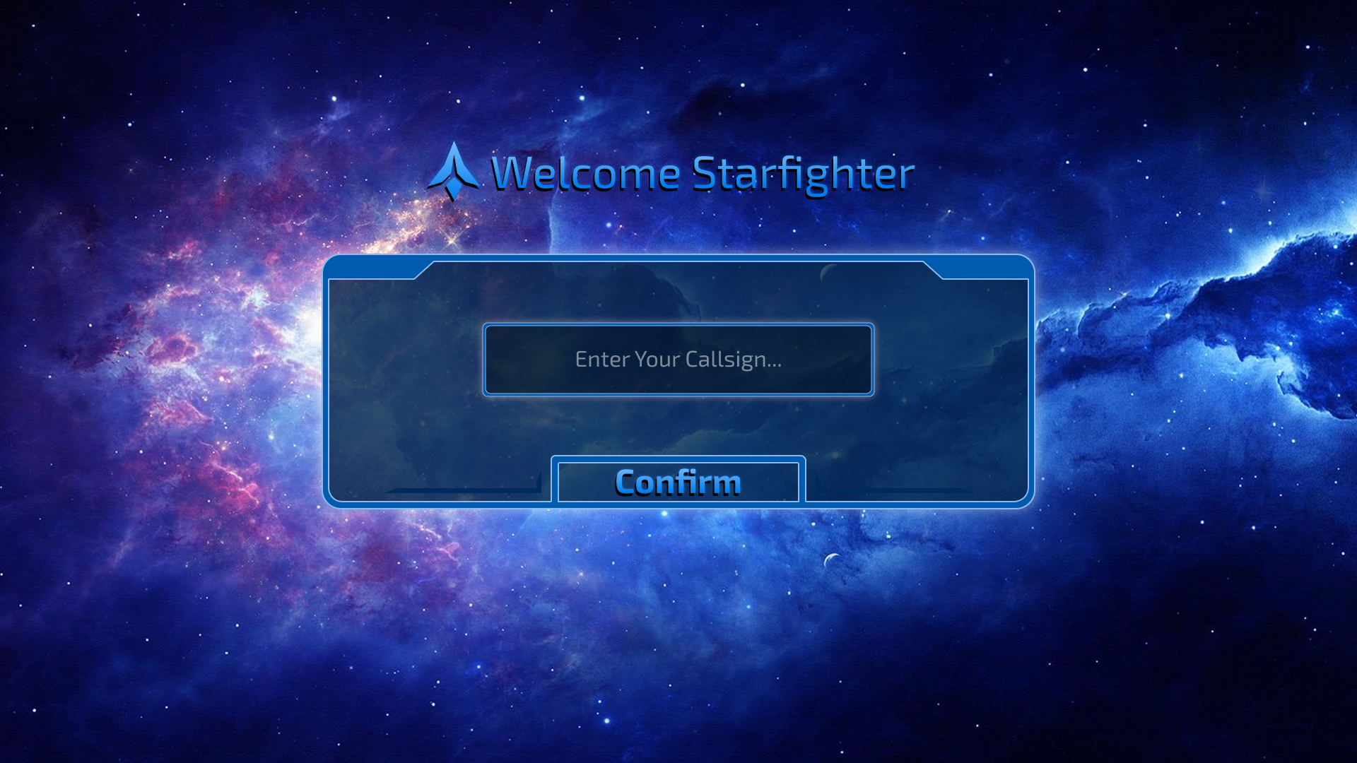 The Main Menu serves as the player’s entry point into the game, designed to establish an immediate visual and thematic connection. The background features a dynamic galaxy-inspired nebula blending shades of blue, purple, and black, creating depth and a sense of immersion. A primary blue interface panel sits at the forefront, accented with geometric elements that provide personality and visual interest without compromising clarity. The layout emphasizes usability, featuring a text input for the player’s name and a clearly identifiable Continue button positioned at the bottom, guiding the user’s attention through a simple and intuitive interaction flow.