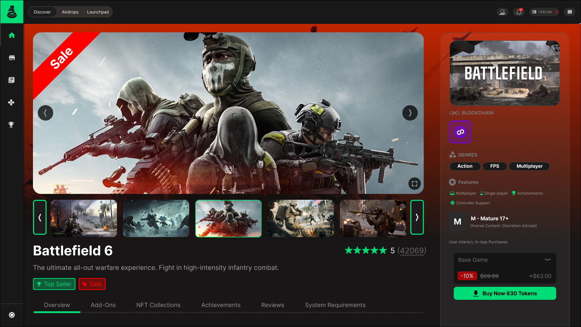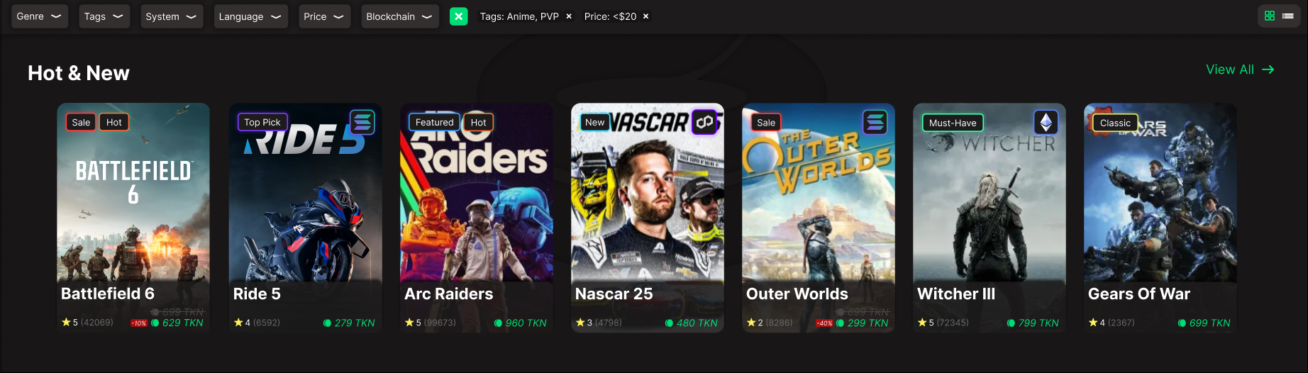 Designed a detailed game page that surfaces key information such as tags, blockchain association, ratings, core features, and asset conversion value.